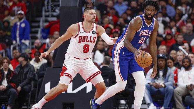 乔尔·恩比德仅出战26分钟便拿下20分,看起来又将迎来一个高效的夜晚。然而,他的光芒迅速消退。下半场,恩比德10投仅1中,随着芝加哥调整防守策略、收缩防线并放手一搏,他显得举步维艰。