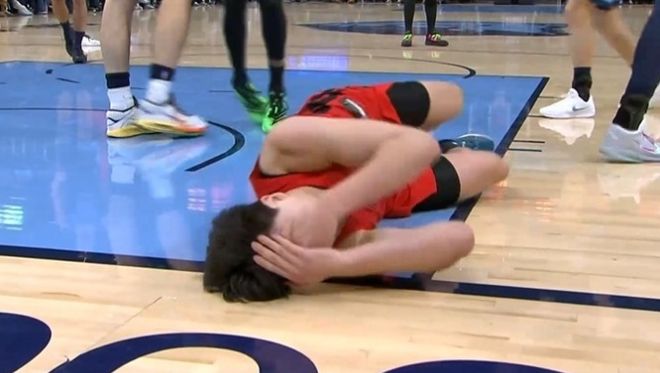 只是在末节杨瀚森连续强打伊迪成功后,被对手打中脸部摔倒在地,后脑勺撞在地板上久久没有起身,且裁判没有吹罚引发巨大争议。