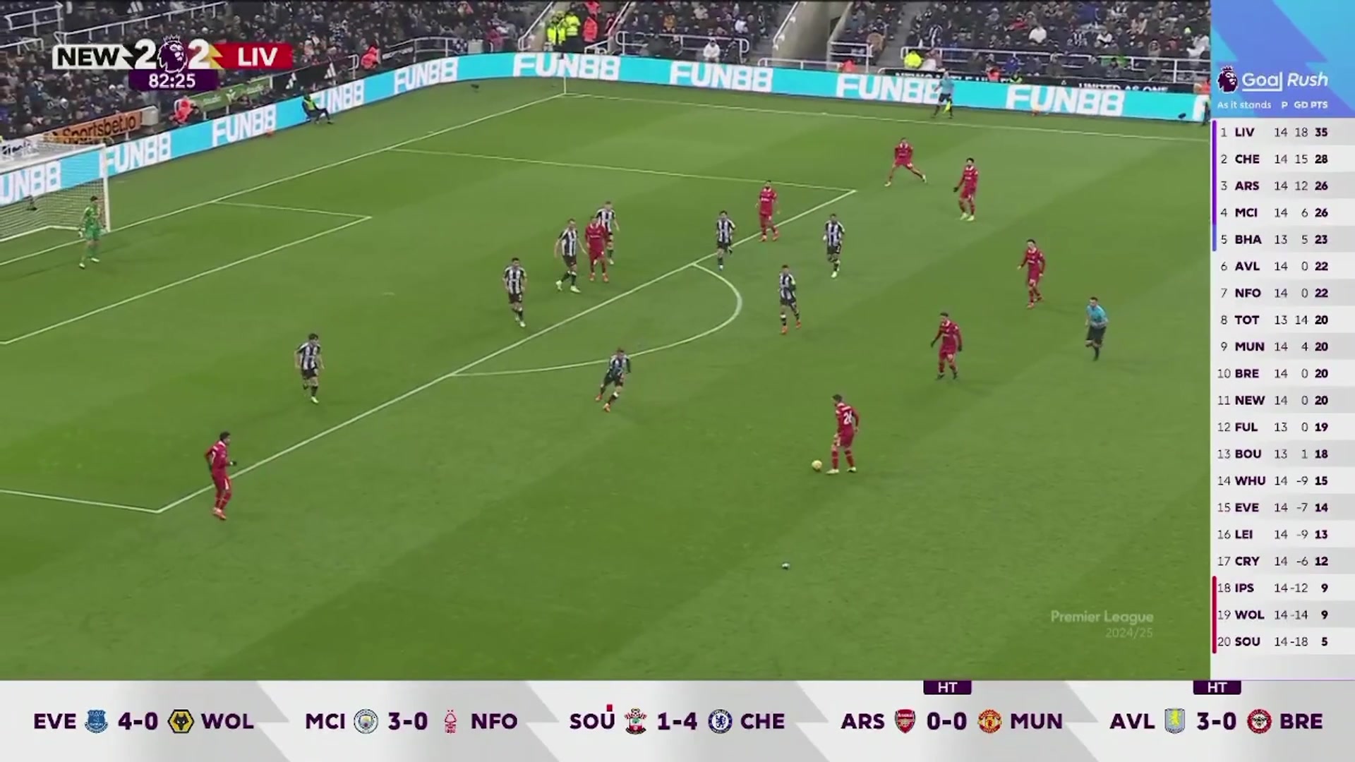 平地起惊雷!伊萨克晃开范迪克世界波破门,纽卡10领先利物浦