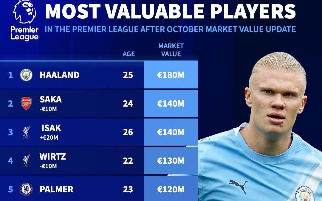 罗德里、福登均跌2000万欧,曼城队内仅剩哈兰德一位亿元先生