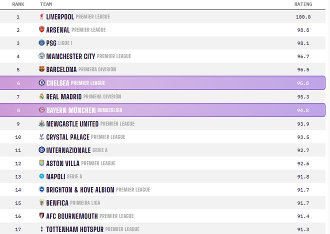 在这11场对决中,拜仁先后击败5支不同的英格兰顶级球队,其中就包括即将再度交手的切尔西。此外,他们还3次战胜阿森纳、1次力克曼城、2次击败曼联、1次拿下热刺,几乎将英超BIG6“挨个点名”。