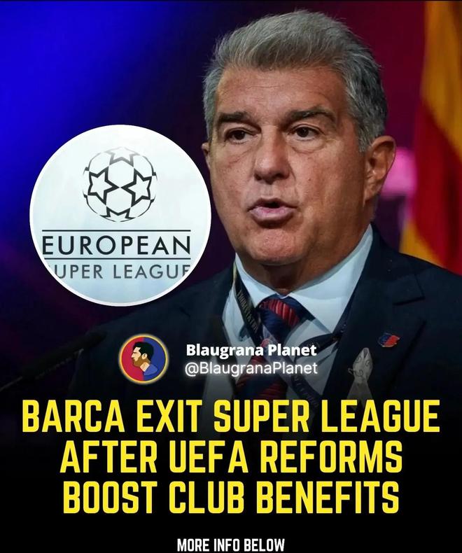 另一个消息就是巴塞罗那已经正式决定退出欧洲超级联赛的计划,拉波尔塔给出这样的理由:“欧足联已经完成了自我改革和提升,不管是赛制还是各家俱乐部的收益分配方面均做出了重大调整,因此我们决定退出超级联赛!”