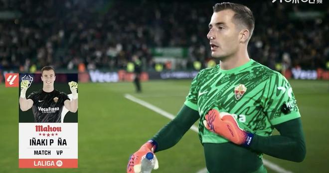 西甲第13轮,埃尔切主场2-2战平皇家马德里,此役奉献4次扑救的埃尔切门将佩尼亚当选西甲官方全场最佳球员。