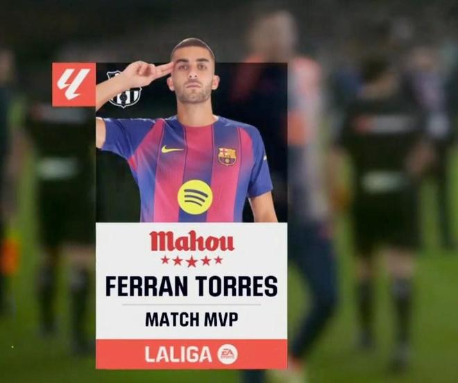 最终经过评选,费兰-托雷斯当选西甲官方全场最佳球员。