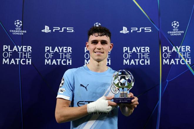 梅开二度,福登当选曼城vs多特全场最佳球员
