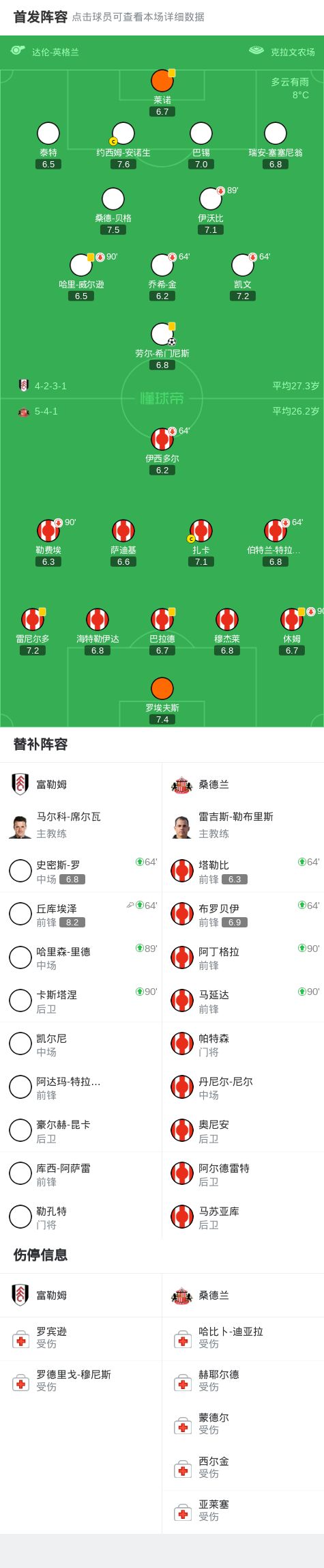 第84分钟,终于破僵,丘库埃泽传中,劳尔-希门尼斯抢点破门,富勒姆1-0