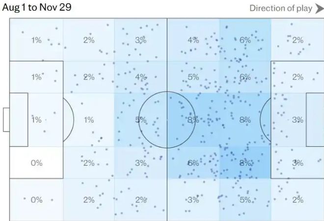 本场他完成44次传球,仅失误2次,成功率高达95%。这与本赛季对阵布伦特福德(76%)和水晶宫(84%)时的低迷形成了鲜明对比。